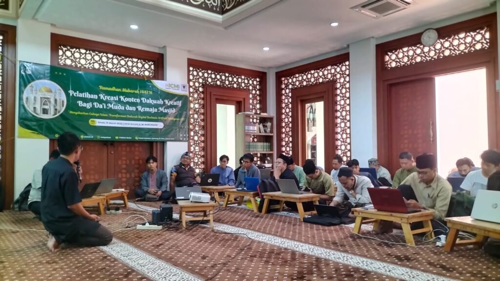“Memasuki era teknologi informasi yang sangat luar biasa pesat, mau tidak mau, para aktivis dakwah harus familiar, dan akrab dengan teknologi informasi dengan berbagai jenisnya,” tutur Pengurus Dewan Kemakmuran (DKM) Masjid Haji Andi Muhammad Ghalib, Masrur, dalam Pelatihan Kreasi Konten Dakwah Kreatif bagi Da’i Muda dan Remaja Masjid “Menyebarkan Cahaya Islam Transformasi Dakwah Digital berbasis Artificial Intelligence (AI), Ahad 15 Maret 2026, Masjid Haji Andi Muhammad Ghalib, Ceger, Jakarta Timur.